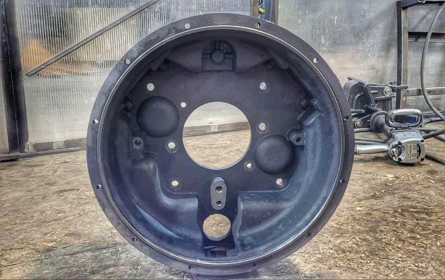 12. Затем впрессовываем подшипник с опорой на его место и закрепляется фланцем задней опоры.