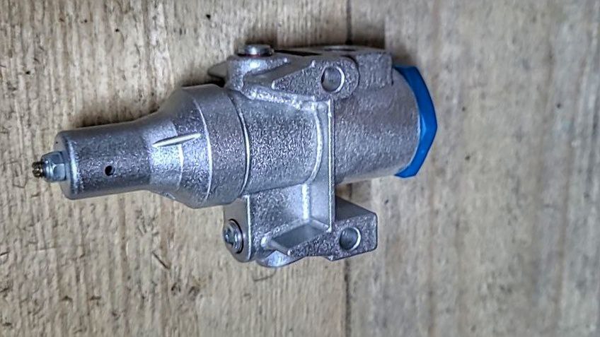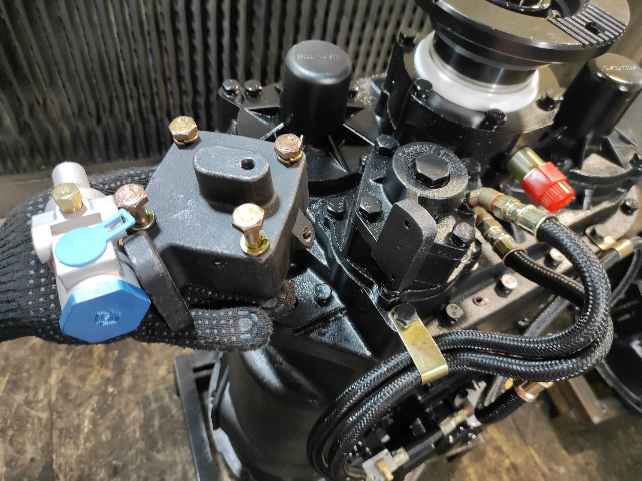 2. После этого нам нужно установить цилиндр нейтрального положения: на пневмоцилиндре снимаем регулятор давления воздуха и откручиваем шланги воздушной магистрали.