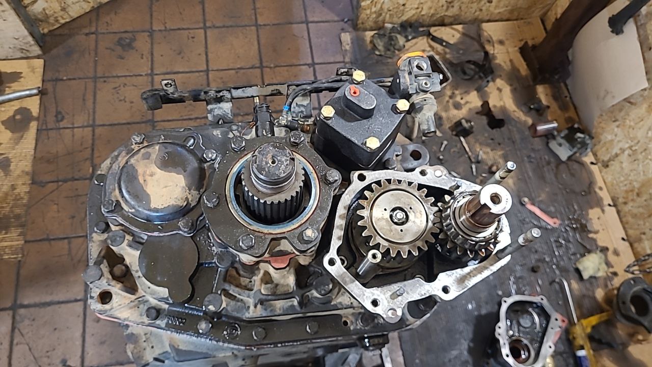 - Следующим шагом мы отделяем демультипликатор и картер сцепления от основной части коробки передач. Снимаем механизм управления переключения и верхнюю крышку КПП.
