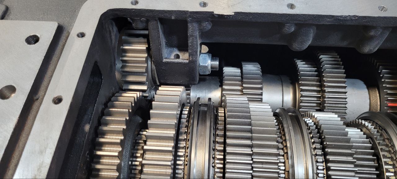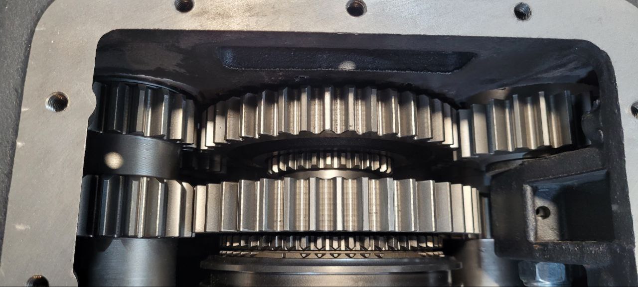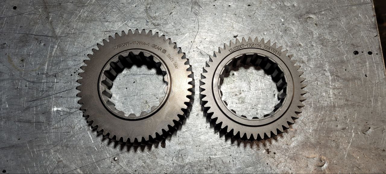 После открытия верхней крышки чаще всего можно не заметить всех дефектов, т.к. коробка передач «ФастГир» оснащена двумя промежуточными валами, что позволяет уменьшить усилие на вторичный вал. Внешние повреждения бывают при разрушении подшипников или синхронизаторов: разбитые части попадают между шестернями механизма, и происходит скол на зубах.