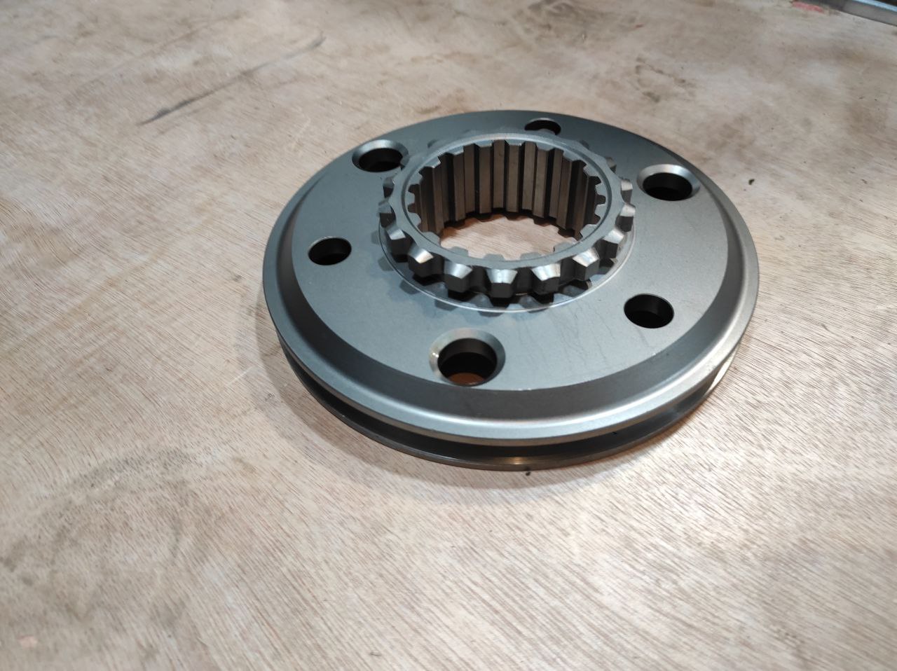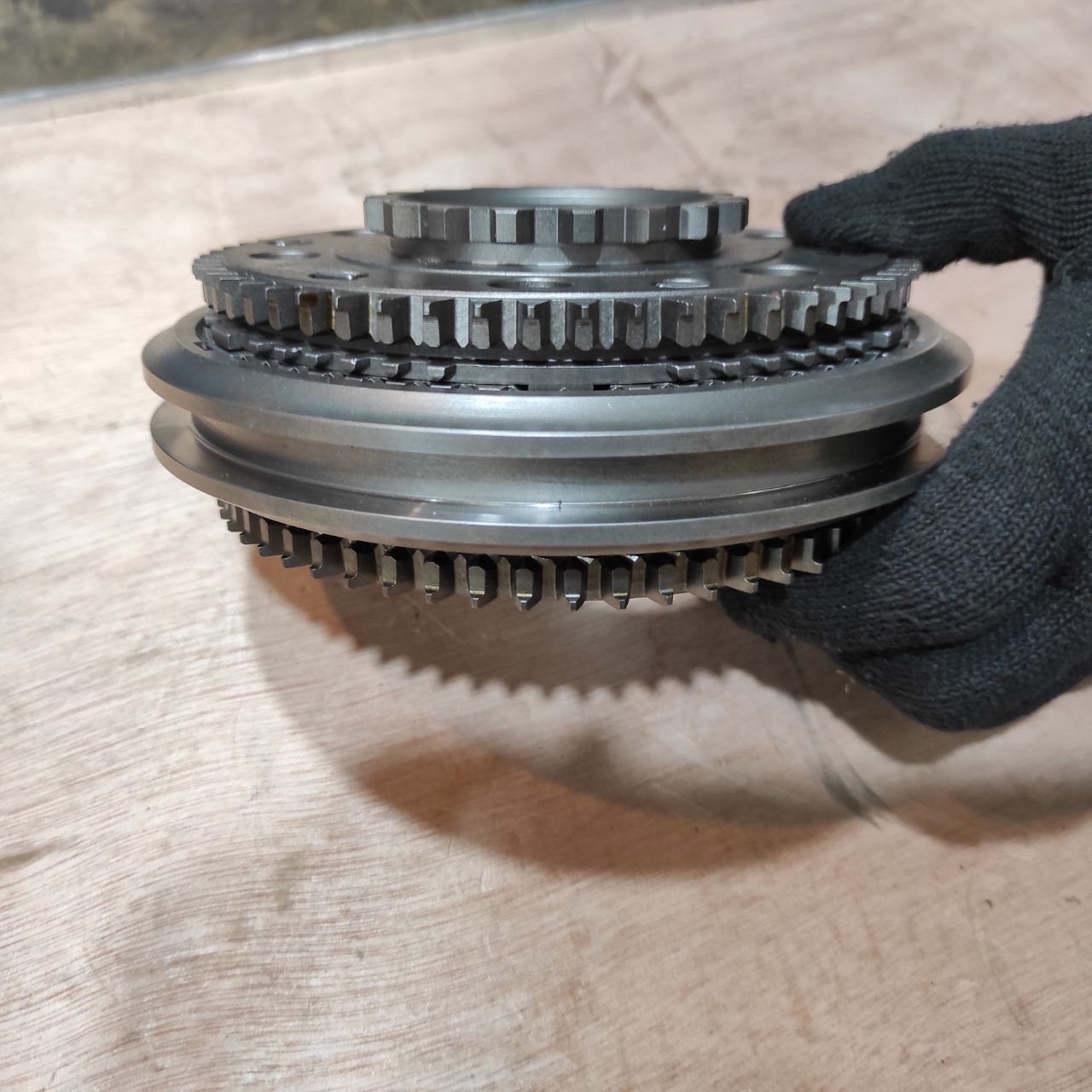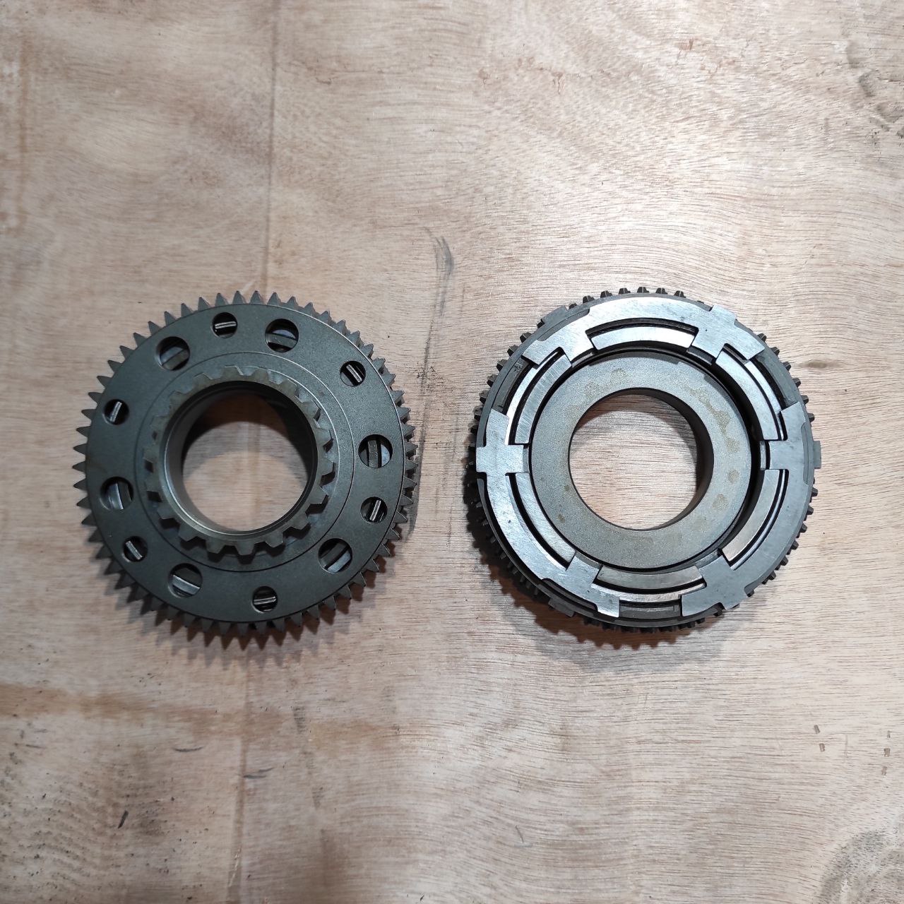 - В размеченную ранее шестерню пониженной передачи помещаем скользящую шайбу шестерни . Монтируем шестерню на выходной вал, чтобы тормоз пониженной передачи совпадал с рабочей поверхностью шестерни.