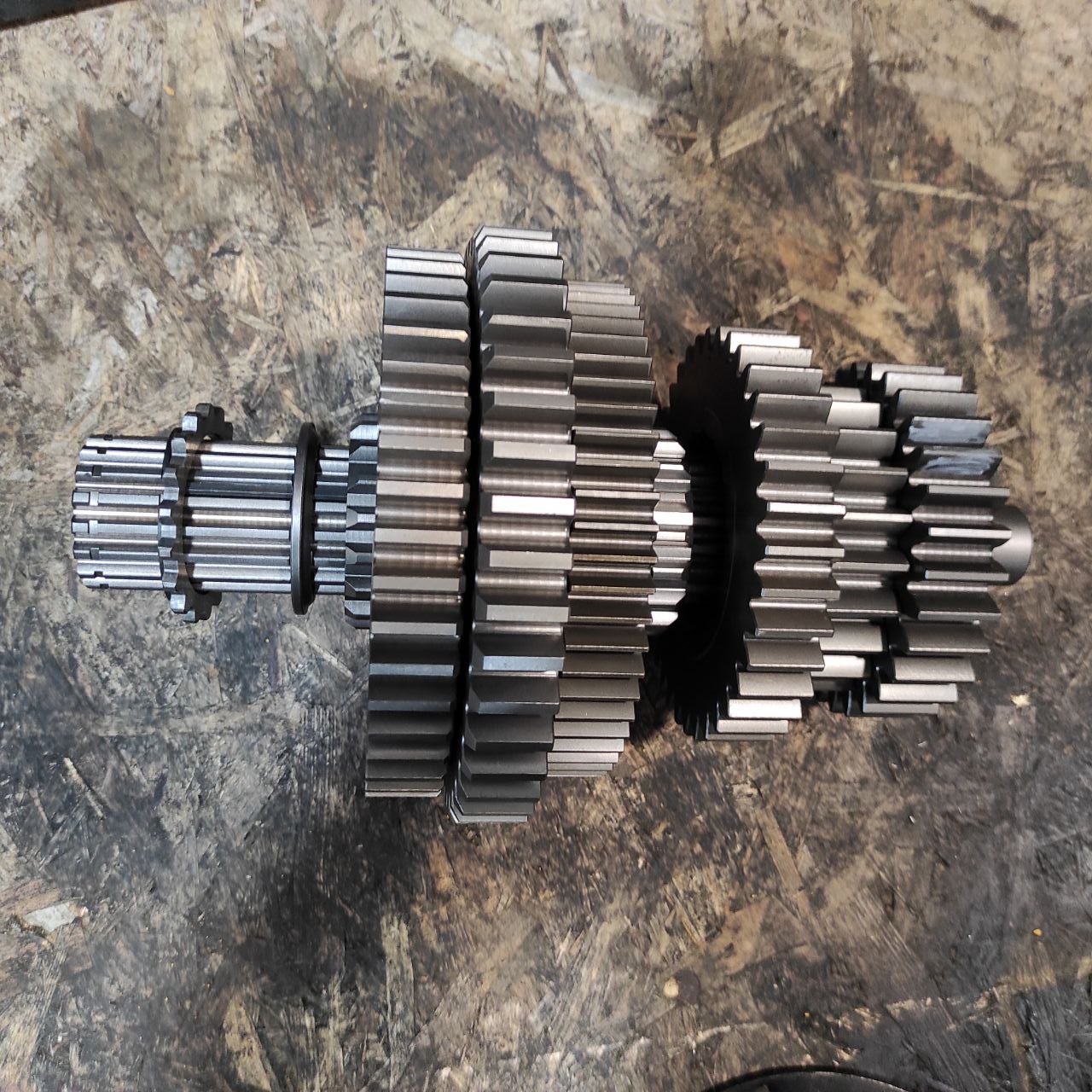 - После этого на шестерню надевается еще одна шайба выходного вала. На промежуточные валы демультипликатора набиваем втулки с разборных подшипников основного корпуса коробки передач.