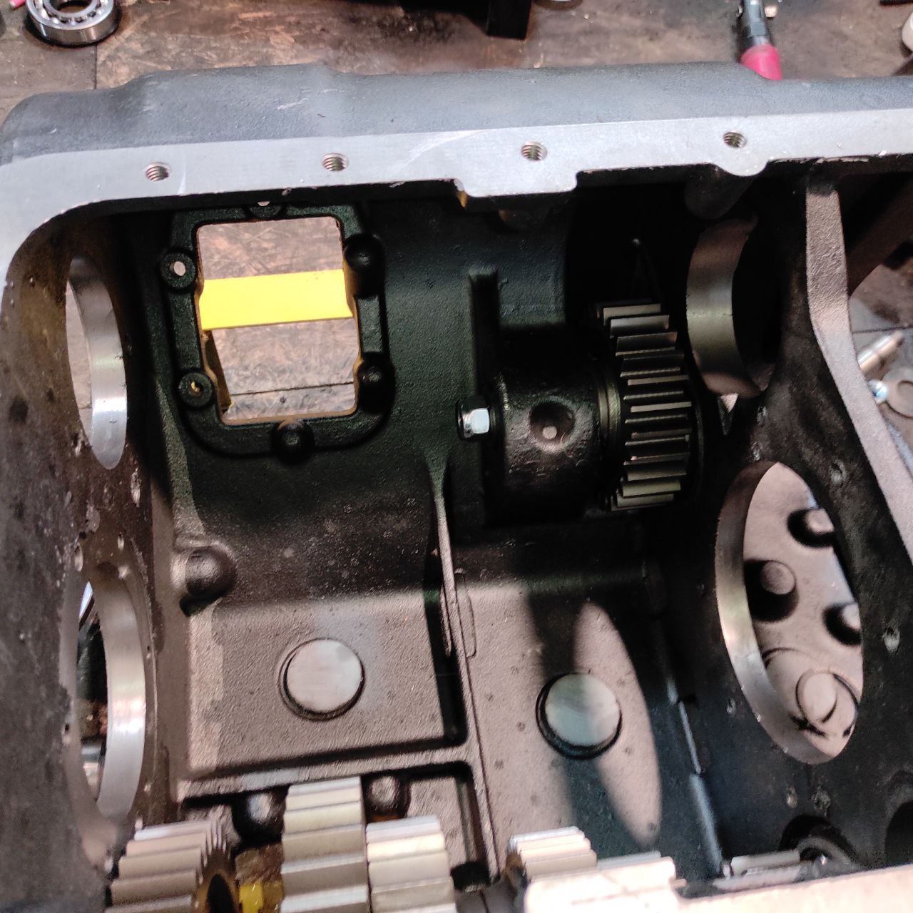 - Шестерню коробки отбора мощности надеваем на игольчатые подшипники и фиксируем шайбой и болтом.