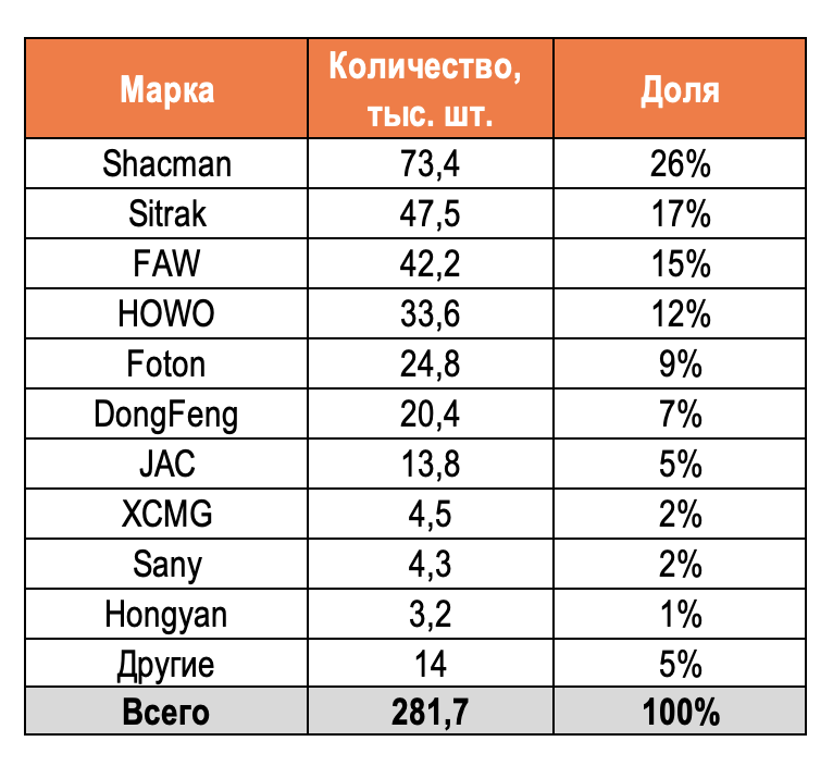 Если рассматривать рынок коммерческого транспорта и запчастей на них, ранее, наибольшую долю занимали европейские бренды. В начале 2022 года, продажи китайской техники – самосвалов и тягачей, значительно возросли, в результате ухода европейский брендов с отечественного рынка. Ввоз китайских грузовиков увеличился в 4 раза, согласно данным Федеральной таможенной службы за 2023 год. Импорт составил 86 531 единиц. В 2024 году импорт китайских грузовиков составил 119 500 единиц.