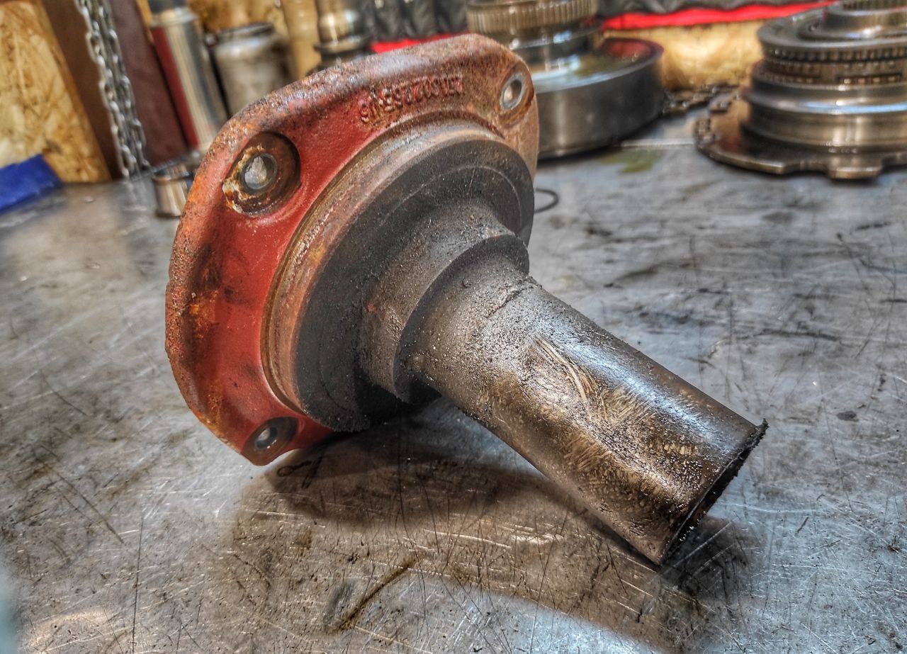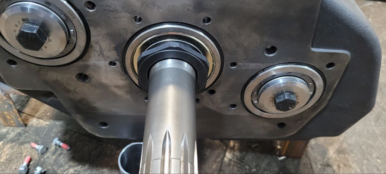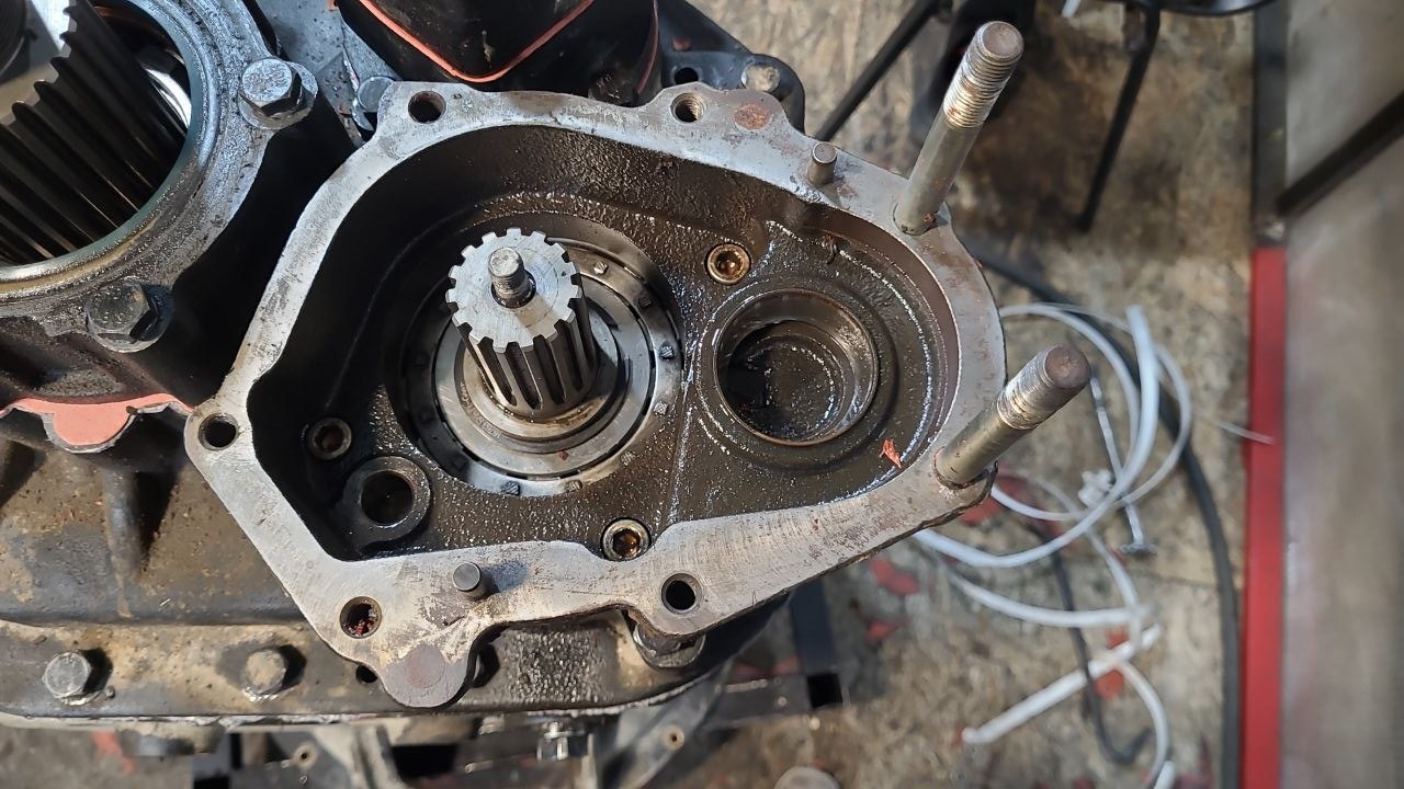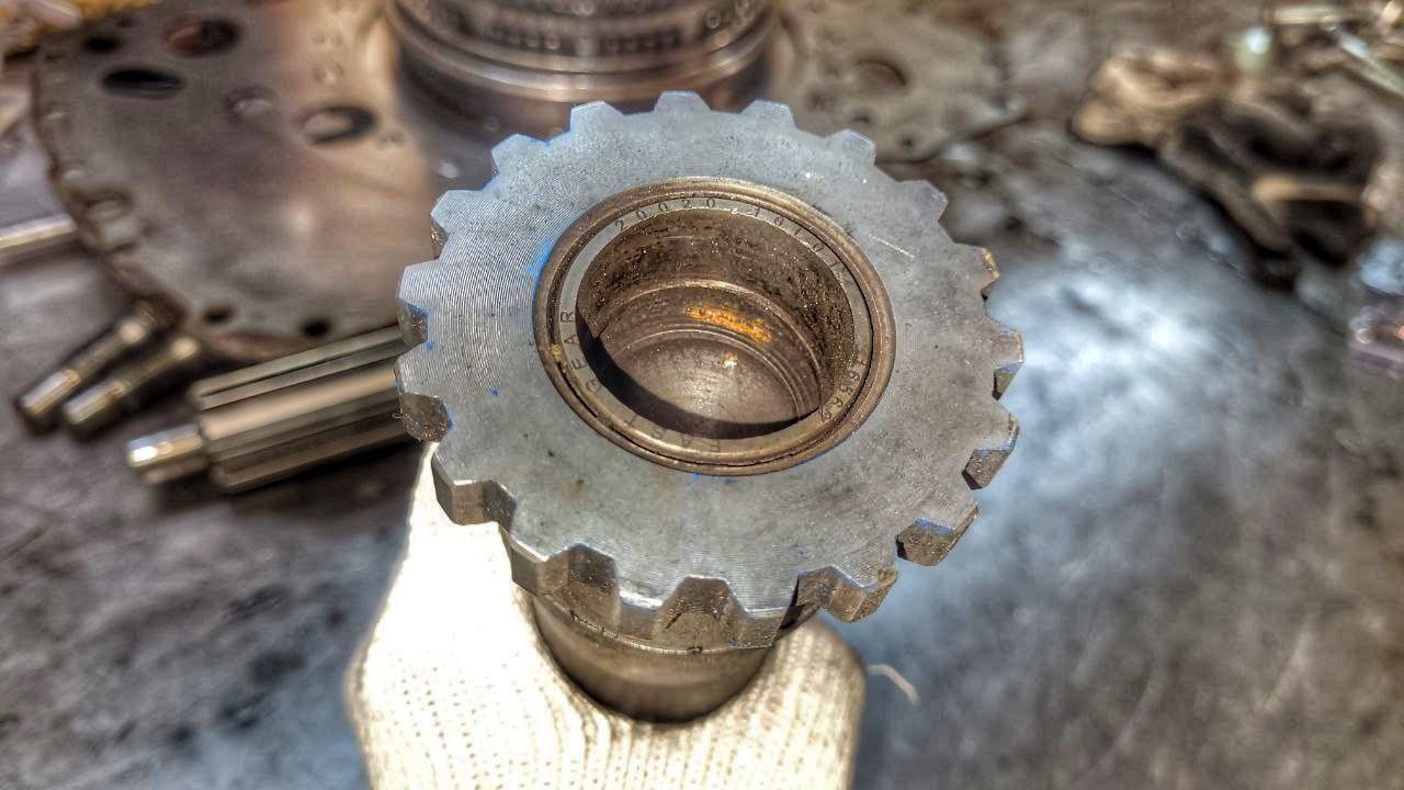 10. Когда у нас собран первичный вал, мы достаем подшипник с опорой, который центрует заднюю часть вторичного вала для установки шестерни заднего хода на ее посадочное место.