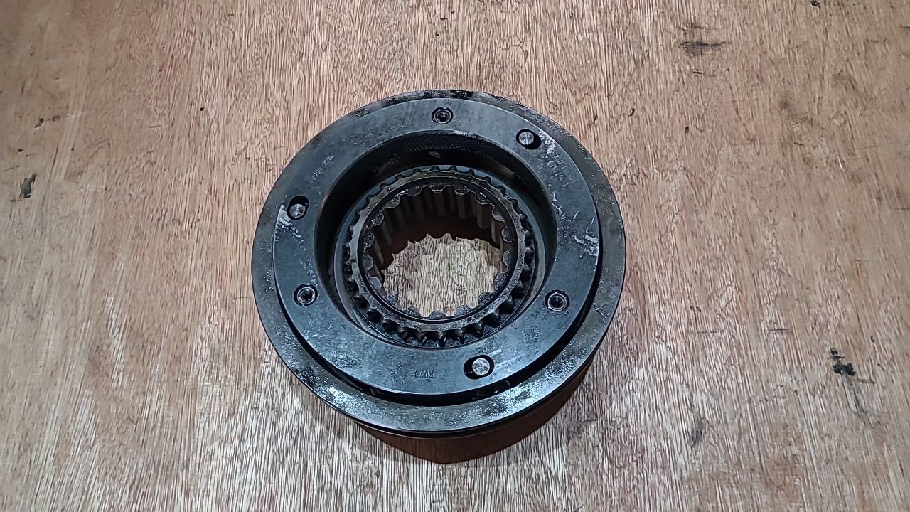 - В размеченную ранее шестерню пониженной передачи помещаем скользящую шайбу шестерни . Монтируем шестерню на выходной вал, чтобы тормоз пониженной передачи совпадал с рабочей поверхностью шестерни.