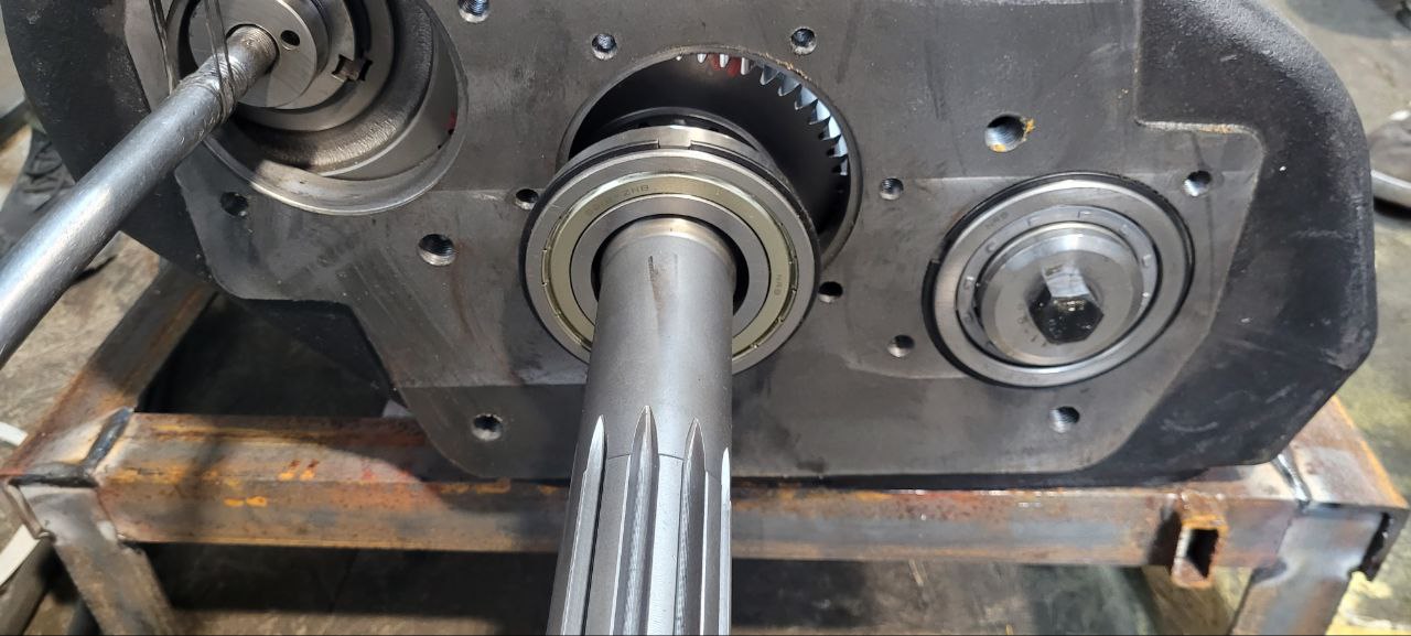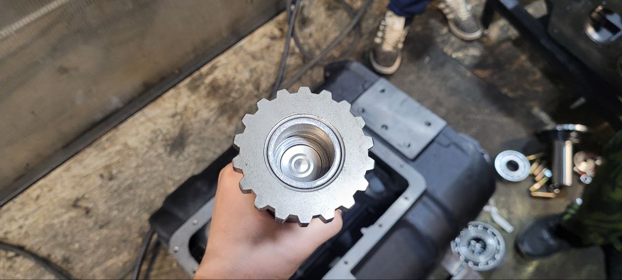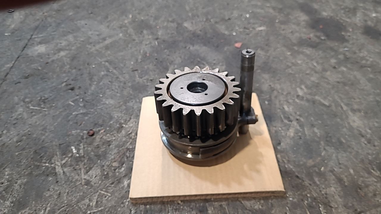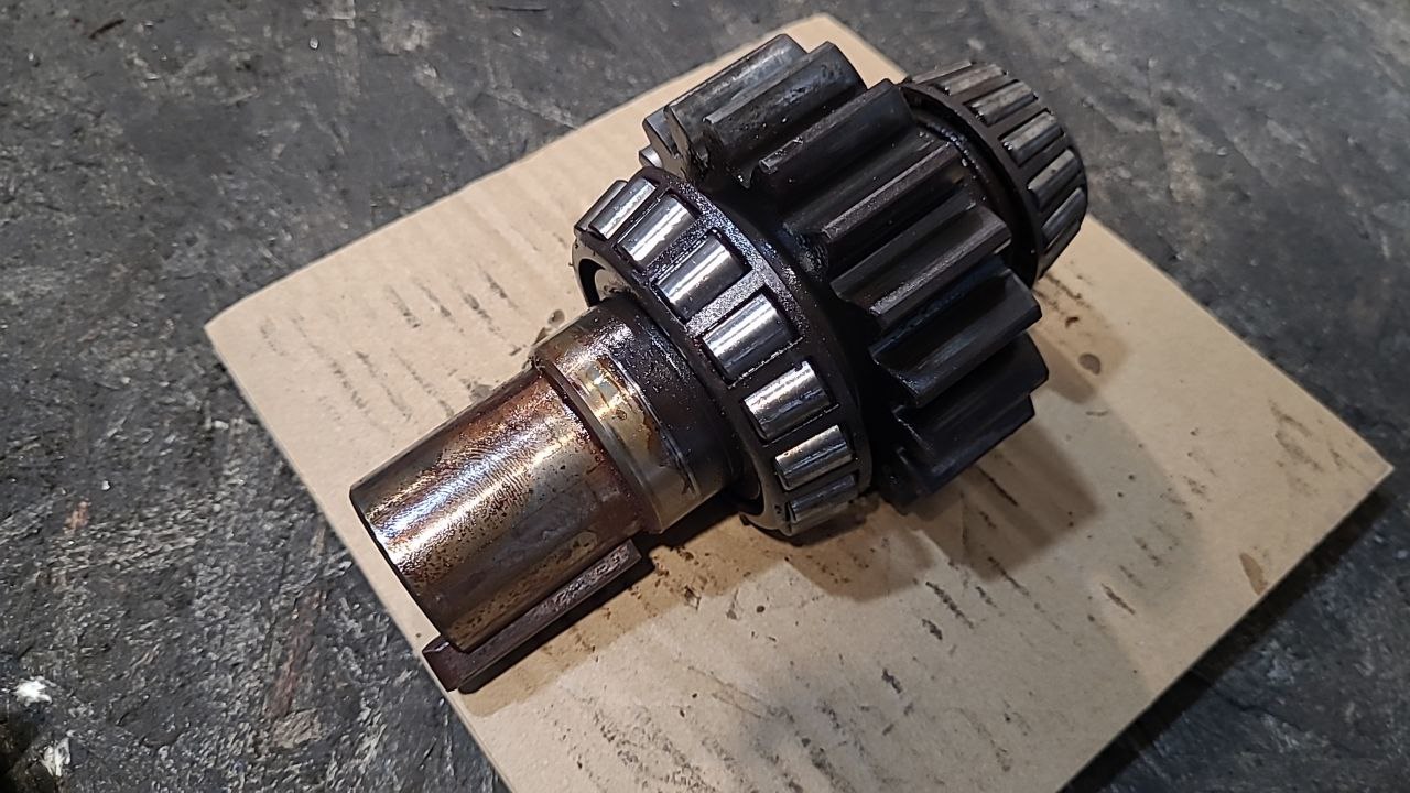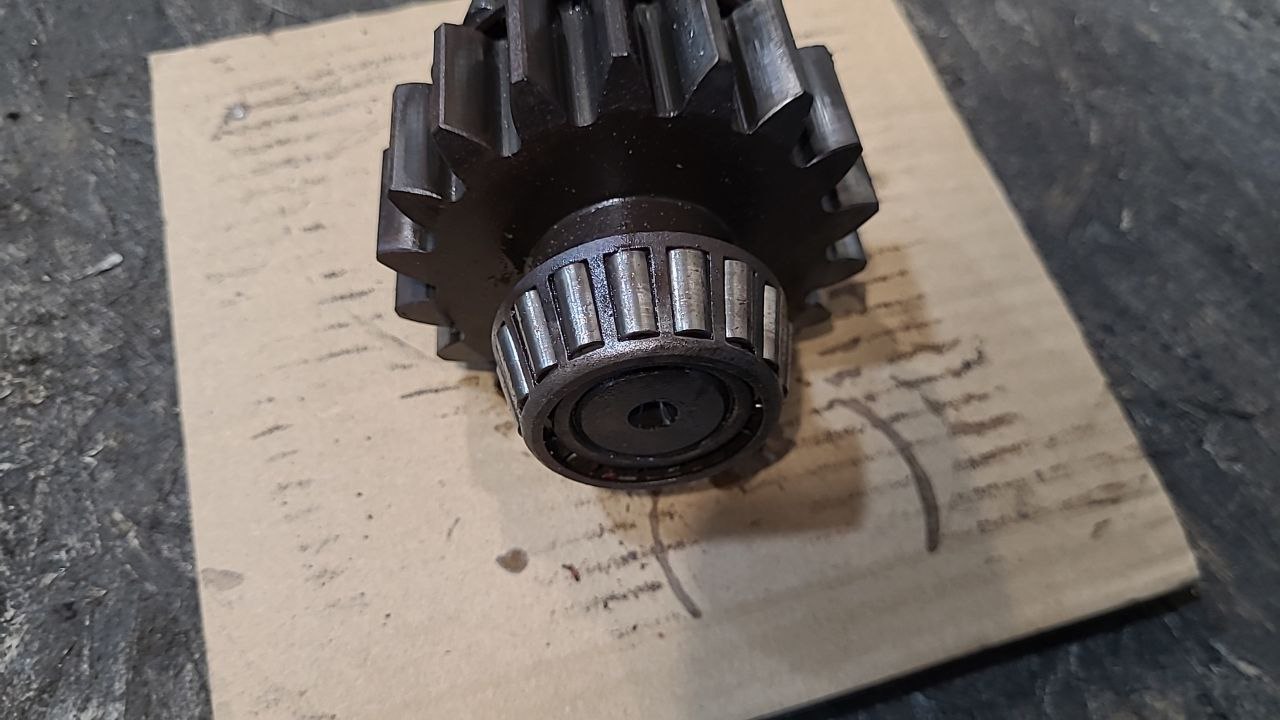 - Шестерню коробки отбора мощности надеваем на игольчатые подшипники и фиксируем шайбой и болтом.
