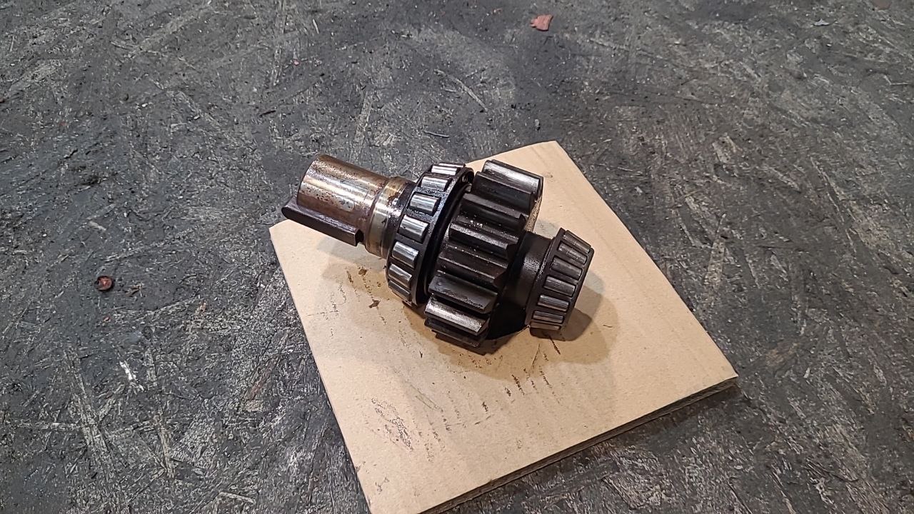 - После этого на шестерню надевается еще одна шайба выходного вала. На промежуточные валы демультипликатора набиваем втулки с разборных подшипников основного корпуса коробки передач.