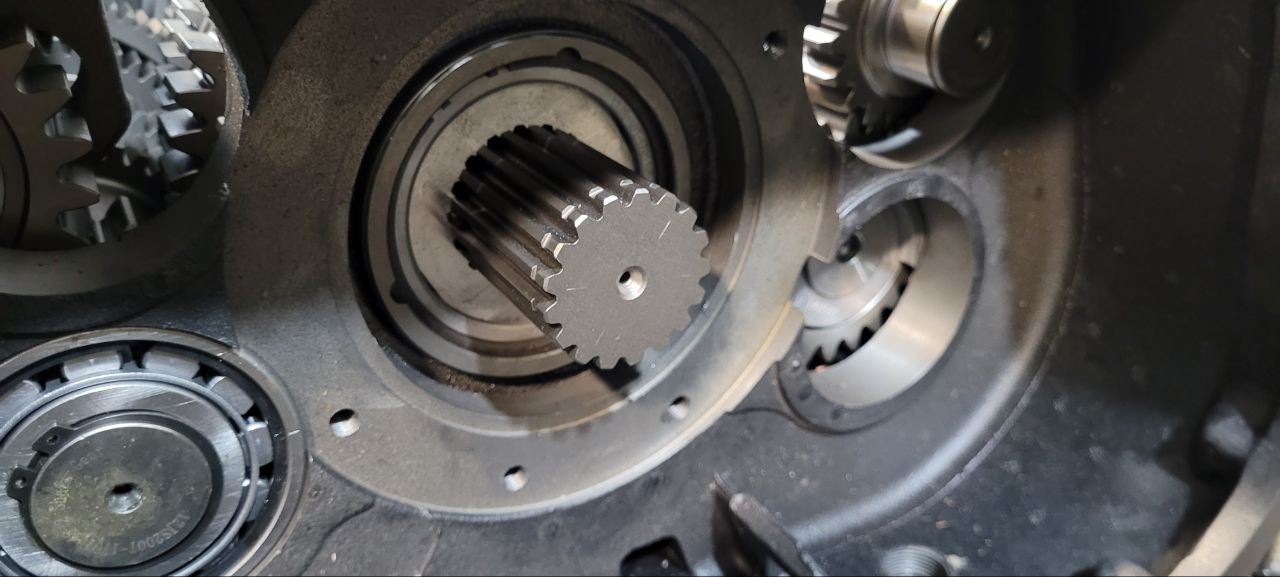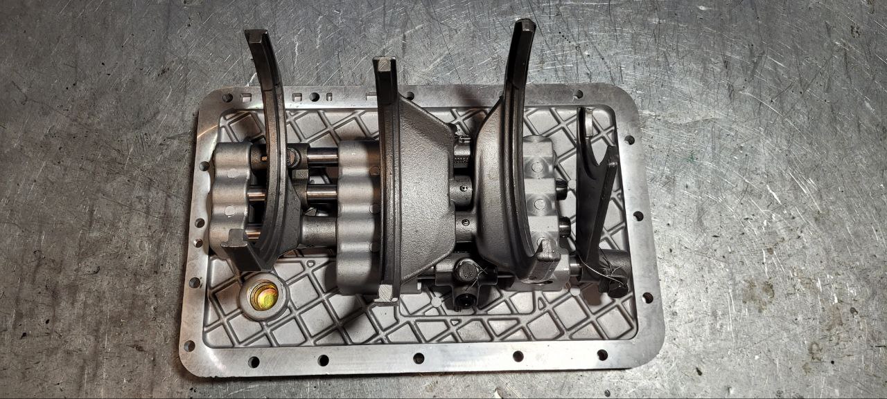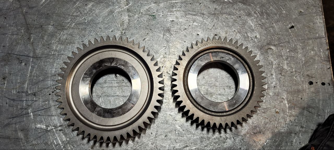 После открытия верхней крышки чаще всего можно не заметить всех дефектов, т.к. коробка передач «ФастГир» оснащена двумя промежуточными валами, что позволяет уменьшить усилие на вторичный вал. Внешние повреждения бывают при разрушении подшипников или синхронизаторов: разбитые части попадают между шестернями механизма, и происходит скол на зубах.