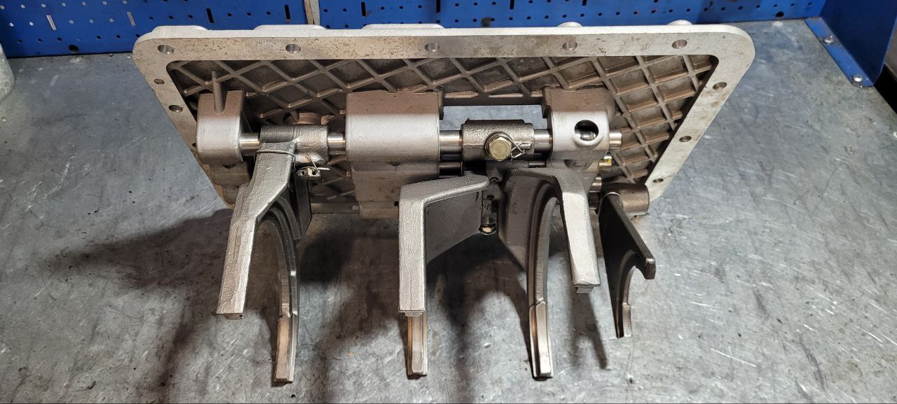 - Следующим шагом мы отделяем демультипликатор и картер сцепления от основной части коробки передач. Снимаем механизм управления переключения и верхнюю крышку КПП.