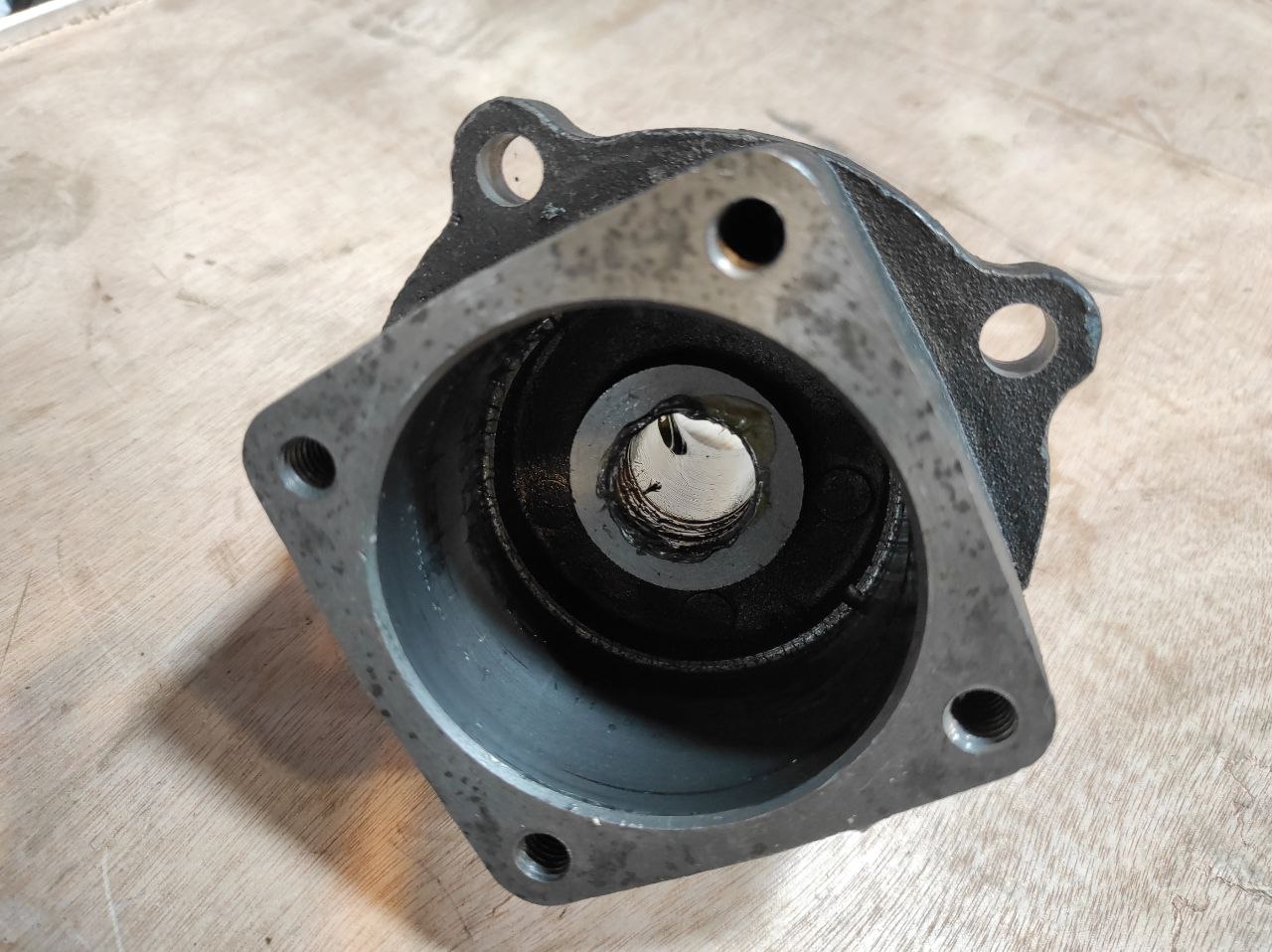12. Затем впрессовываем подшипник с опорой на его место и закрепляется фланцем задней опоры.